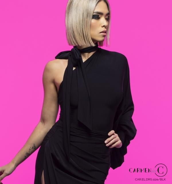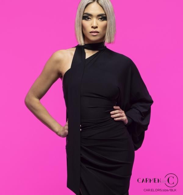 女性の体の細かいパーツをバランス良く出すことで、完璧なラインを創り出したハイセンスなドレス。